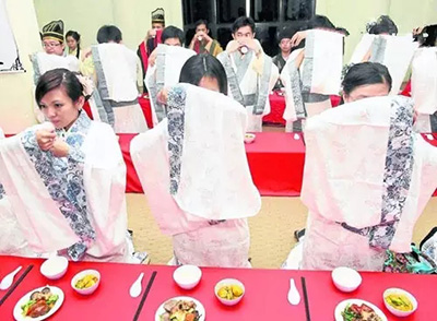 酒未喝完不上飯,一般情況下,在山西,主人敬的第一輪酒,客人不喝是不行的,否則被認(rèn)為看不起主人,客人無論酒量大小,要接酒痛快。山西人待客十分講究禮節(jié),主人要顯示熱情與隆重,故以滿為敬,客人要以手護(hù)盅杯表示致謝,主人勸酒,客人要端起酒杯來輕抿一口以示禮貌。