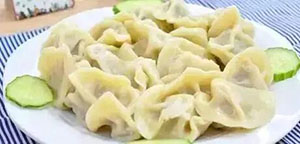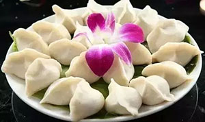 遼寧人特別喜歡做燙面水餃,燙面水餃對和面有極高的要求,面粉一分為二,一部分面粉慢慢加熱水,用筷子不斷攪拌成雪花狀,另一半面粉加入涼水,同樣的做法。之后將兩部分面粉分別揉成團,再合二為一揉成大面團餳30分鐘。燙面餃子一般蒸著吃,口感更好,非常勁道。