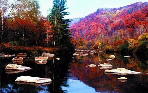 早年間叫的是"養(yǎng)胡溝",是深山老林中土匪藏身的地方。上個(gè)世紀(jì)末本桓線還沒(méi)修通,但已經(jīng)有大批的畫家追尋美景爬山涉水來(lái)這里寫生,人稱"畫家村"。每年的九月下旬始,輕霜慢慢浸透山野,構(gòu)成了一幅幅另人嘆為觀止的眩目"楓景"。