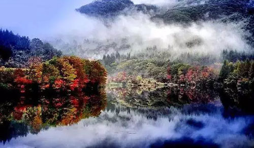 小山村少有人知。閑暇之際,置身秋之山林,心里滿是感動(dòng)。行走山野,視野所及:民居側(cè)、山腳下、溪流畔、峽谷間、野徑旁,都被或火紅、或金黃、或濃綠、或枯白等各種顏色的山樹(shù)葉子和雜草染成斑斕色彩。