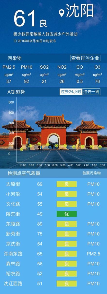 接下來共同關(guān)注沈陽未來幾天的具體天氣情況:今天白天天氣晴朗,休息的時(shí)候到室外曬曬太陽,還是很舒服的,白天的最高氣溫在15℃上下,西南風(fēng)3-4級(jí),空氣質(zhì)量良;夜間的最低氣溫在4℃上下。