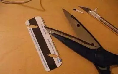 快刀斬亂麻!一刀兩段!將銀行卡切成兩半。