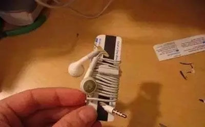 把耳機線繞著缺口纏起來,就能很好地纏繞在繞線器上了。