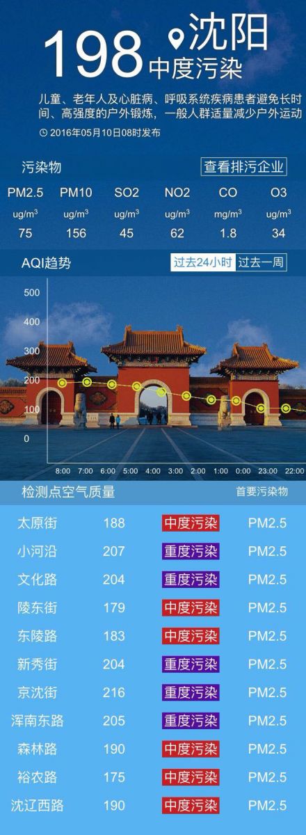 接下來(lái)共同關(guān)注沈陽(yáng)未來(lái)幾天的具體天氣情況:今天的陽(yáng)光很充足,風(fēng)力不大,北風(fēng)3-4級(jí),今天的天氣有一點(diǎn)小小的瑕疵,空氣質(zhì)量為中度污染,白天最高氣溫為25℃;夜間最低氣溫為10℃。