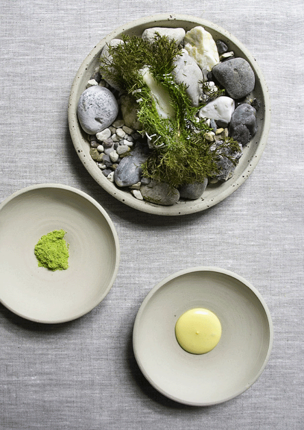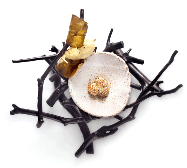 ↑↑↑交錯的黑色樹枝,粗糙破損的瓷器餐具,呼應著盤中看似簡單卻工序復雜的料理,我們吃的不是食物,是情懷!
