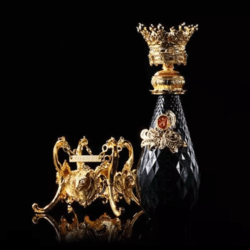 金皇冠,瓶身金盾牌,金色天使之翼都鑲上24k金。昂貴之處在于,來(lái)自日本神戶地區(qū)的低硬度天然礦泉水,由桂由美(名貴華麗的日本婚紗)授權(quán)特別定制,鉆石菱形瓶身是由施華洛世奇水晶和貴金屬涂層完美結(jié)合而成,貴氣十足,真正的買(mǎi)櫝還珠!參考價(jià)更是高達(dá)7150元。