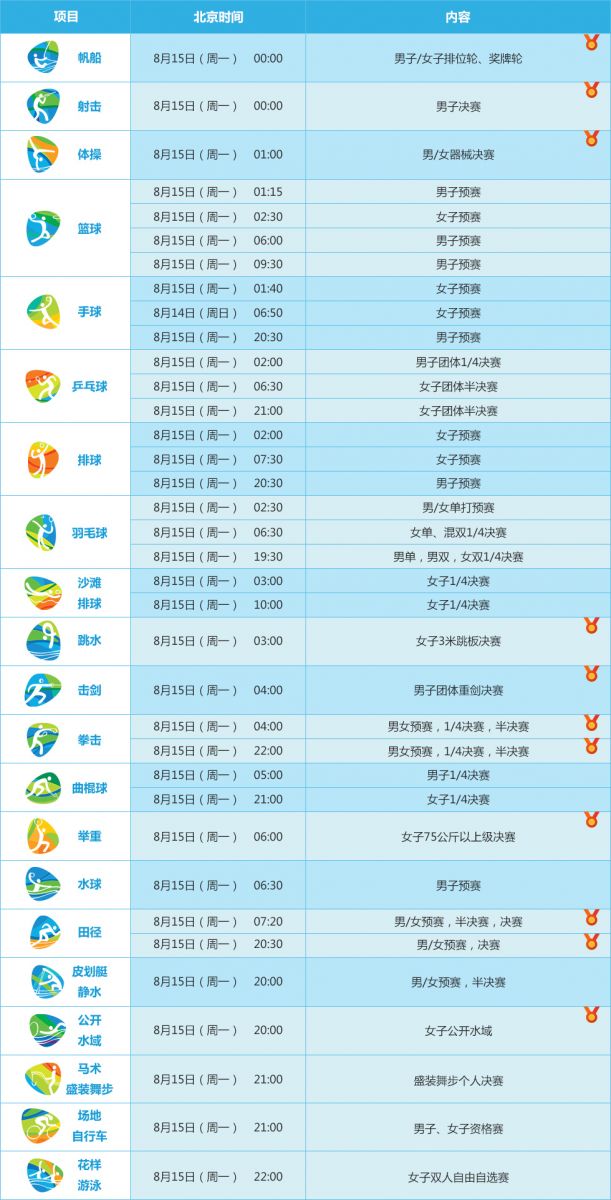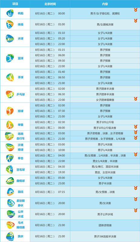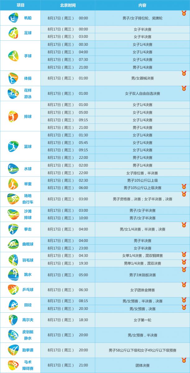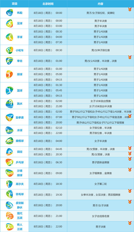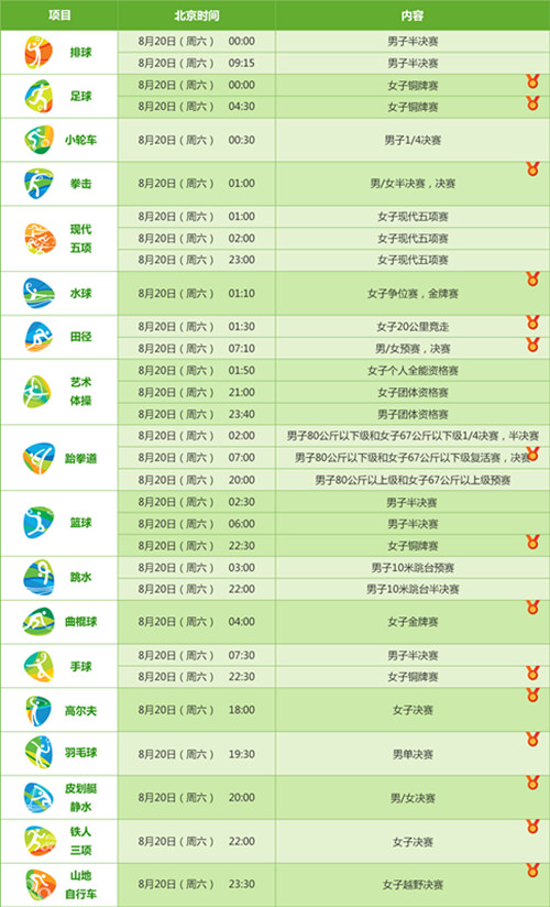 8月20日19點(diǎn)30分的羽球男單決賽,林丹有希望實(shí)現(xiàn)可怕的三連冠。而在3點(diǎn)30分,邱波和陳艾森將努力奪下男子10米跳臺的金牌。9點(diǎn)15分進(jìn)行女排決賽。