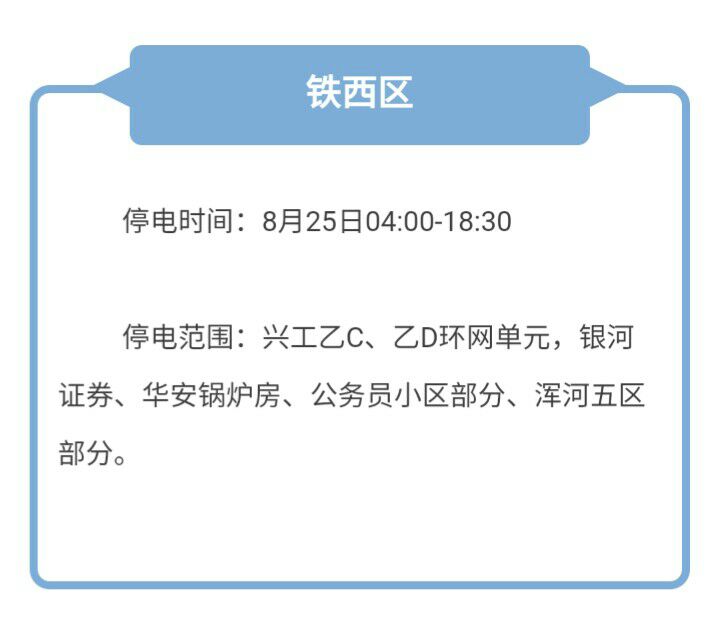 在電燈沒有被發(fā)明的時(shí)代,人們靠蠟燭、油燈照明,但是現(xiàn)在一停電再退回到原來的時(shí)候就讓人難以接受、因?yàn)橥k姴粌H僅是失去光亮,冰箱、電磁爐等也會(huì)無法工作,最重要的是WiFi也沒了,所以大家要注意啦!本周沈陽(yáng)市鐵西區(qū)、渾南區(qū)、遼中區(qū)、沈北新區(qū)四個(gè)區(qū)將停電,最長(zhǎng)停電時(shí)間達(dá)14.5個(gè)小時(shí)。請(qǐng)居民和用電單位提前做好準(zhǔn)備。