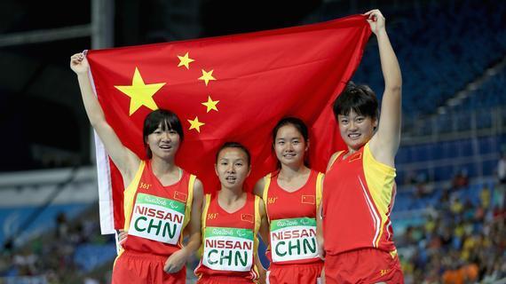 田徑女子T35-38級(jí)4x100米項(xiàng)目中,中國運(yùn)動(dòng)員蔣芬芬、陳君飛、李英粒、文曉燕為祖國奪得一枚金牌(50.81秒),并一舉刷新世界紀(jì)錄!