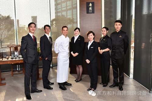 從左至右—— 餐飲經(jīng)理左翔先生,唐閣餐廳經(jīng)理林愷先生,中餐行政總廚譚仕業(yè)師傅,唐閣餐廳副經(jīng)理鄒宇女士,唐閣餐廳經(jīng)理文藝女士