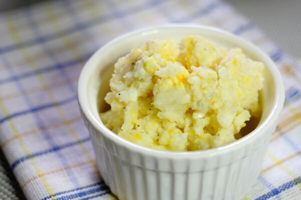 炒土豆泥時,先加入少許烤香、捻碎的咸蛋黃炒至翻沙,再下入土豆泥,炒后的成品香味濃郁,而且不會粘鍋。
