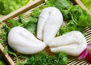 將烏魚蛋從罐頭內(nèi)取出,將其一片片揭開,用清水沖洗兩遍。鍋內(nèi)加入清水1500克,燒開后放入30克泡打粉、30克堿面調(diào)勻,下入烏魚蛋小火煮30分鐘倒出。按著這種方法反復操作三次,再用清水煮一次,即可使用,還可以用冷水浸泡,隨用隨取。烹調(diào)后,烏魚蛋沒有一絲腥味。