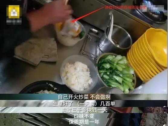 有人在外賣平臺(tái)上訂餐后,外賣餐館將速食料理包放入米飯中,在微波爐中加熱后即完成全部制作過程。外賣老板還承認(rèn),自己不會(huì)做飯!就依靠這些速食料理包,每天可接幾百單,最高收入達(dá)3000元一天。