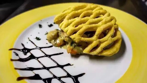 扇貝、明蝦、法式鮮奶油制成的海鮮糕點(diǎn),輔以香蔥調(diào)味