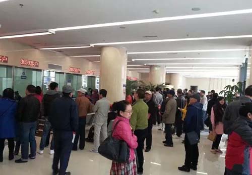 繳費現(xiàn)場在等待交費的市民很多,由于繳費大廳已經(jīng)人滿為患,不少人只能在室外等待。