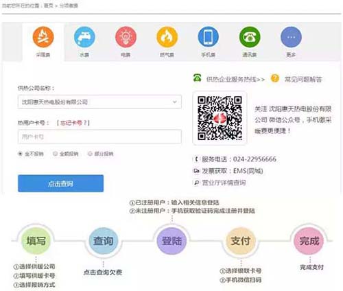 1、通過"熱付通-沈陽市供熱行業(yè)便民繳費平臺"跨行網(wǎng)銀及微信掃碼支付。