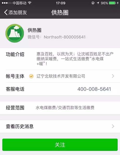 3、關(guān)注該平臺已開通的供熱企業(yè)微信二維碼