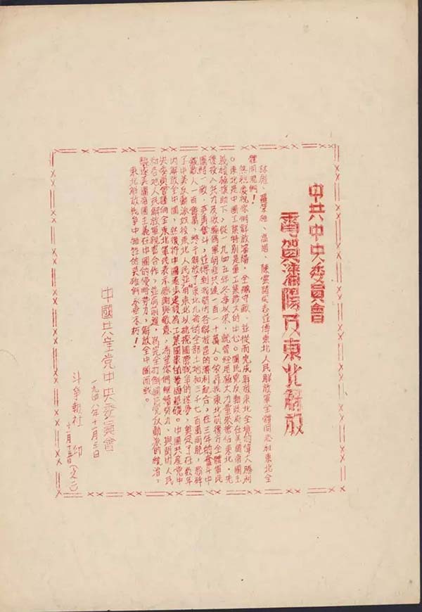 那年,中共中央電賀沈陽解放的傳單還是這個模樣。在百年砥礪后,沈陽已是如今的模樣: