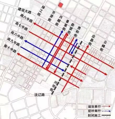 根據(jù)《關(guān)于對鐵西區(qū)興華南街周邊8條街路進行交通組織調(diào)整的通告》顯示:為配合沈陽地鐵九號線施工,鐵西區(qū)興華南街建設(shè)大路至沈遼路路段11月下旬起將進行部分路段半封閉施工,為減少地鐵施工對交通的影響,結(jié)合周邊道路通行情況,在現(xiàn)狀單行路基礎(chǔ)上,將對興華南街周邊8條街路進行單向通行的交通組織調(diào)整,具體調(diào)整街路為: