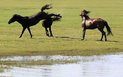 【釋義】騾馬等跳起來(lái),用后腿向后踢。