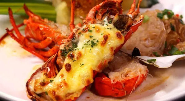 最能驚艷味蕾的莫過于芝士焗波士頓龍蝦。維生素含量極為豐富。用千島醬和馬蘇里拉芝士嚴嚴實實地覆蓋其蝦肉表面,烤至金黃。拋開口感濃郁、味道鮮甜不說,這樣的做法還能把龍蝦的水分全部鎖在芝士下面,最大程度的保留所有營養(yǎng)。