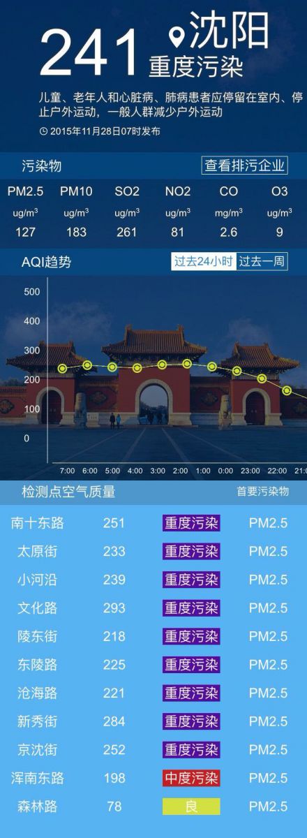 今天沈陽的空氣質(zhì)量又回到了重度污染,如果沒有比較重要的事情,還是宅在家里比較合適。