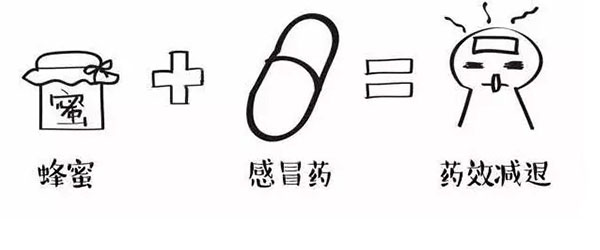 感冒藥如泰諾、快克、感立克、感冒清等都含有對乙酰氨基酚,遇到蜂蜜會形成一種復(fù)合物,減弱退燒作用。同理,凡是含蜂蜜的中成藥,如止咳糖漿、川貝枇杷膏等都不宜和上述感冒藥同服。