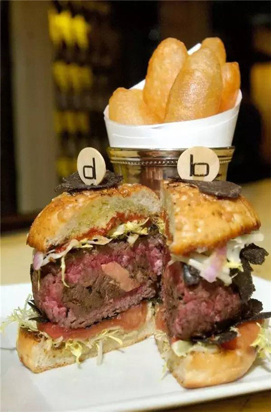 奢侈的食材往往意味著高昂的售價,位于紐約的DB Bistro Moderne非常了解這其中的奧秘。他們推出的松露漢堡,選擇了西冷牛排作為原料,肉排中還包裹了足量的鵝肝醬調(diào)味。最后,廚師十分大方地在肉餅和漢堡胚之上,鋪上了厚厚的一層松露。唯一讓人擔心的是:這些奢侈食材組合起來真的好吃嗎?