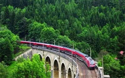 行程一小時(shí)的塞默林鐵路線從格洛格尼茨出發(fā),途徑阿爾卑斯山的塞默林隘口,最終到達(dá)米爾茨楚施拉格。這條鐵路線于1854年完工,沿途共穿過16座高架橋和14條隧道。在TNT炸藥和隧道鉆孔機(jī)問世之前,它們可全都是手工開鑿的,真可稱得上是鐵路建造初期的土木工程杰作。