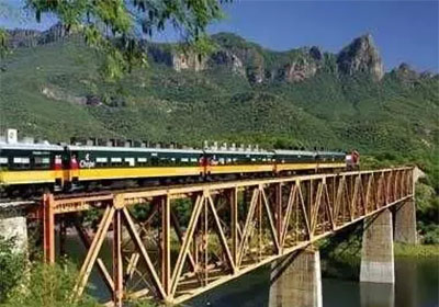 墨西哥最現(xiàn)代化、最舒適的旅客列車就穿行在這條又稱銅峽谷的鐵路線上。這條行程13小時(shí)的鐵路線將墨西哥北部的干旱內(nèi)陸和太平洋地區(qū)連接起來。穿越陡峭的峽谷壁、瀑布和沙漠平原,還可以見到塞拉-塔拉胡馬拉的絕美景色。