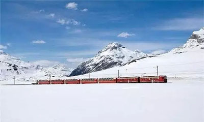 列車沿著世上最著名的高山窄軌鐵路一路行駛,從瑞士圣莫里茨的阿爾卑斯山冰川徑直開往棕櫚樹搖曳的意大利城市蒂拉諾。鐵路線沒有齒軌、齒輪和鋼索。夏季的時(shí)候,游客可以坐在敞篷車廂中享受2小時(shí)的車程。沒有車窗的阻隔,是個(gè)拍照的好機(jī)會(huì)。列車行駛過程中之字形的大轉(zhuǎn)彎會(huì)使車尾的乘客看到車頭朝著自己開來。鑒于此線路十分火爆,建議游客提前預(yù)訂車票,單程車票為57美元。
