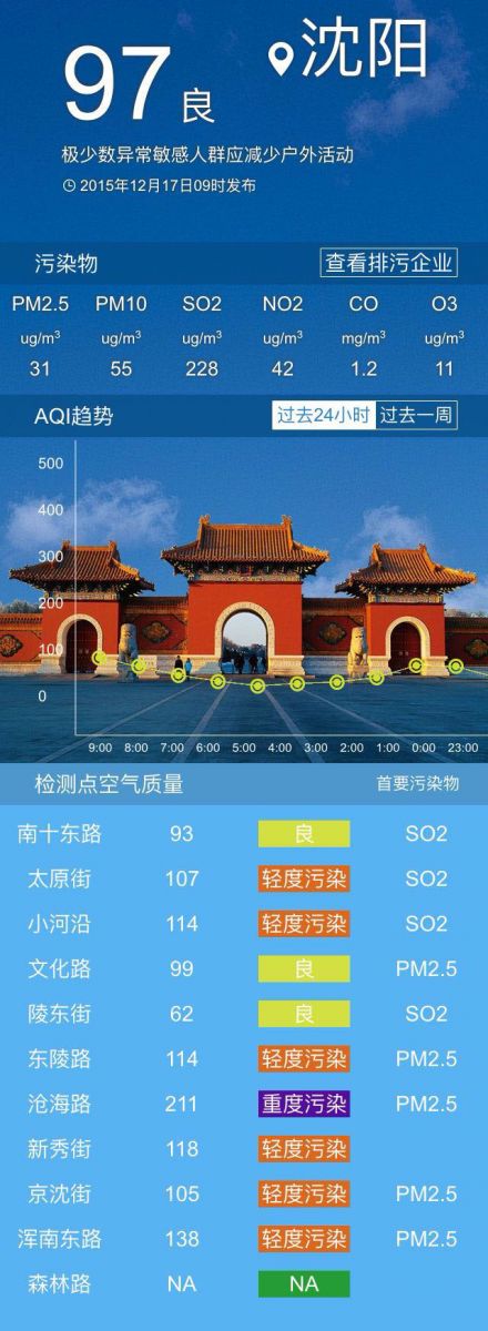 今天白天沈陽冷空氣勢(shì)力減弱,冰冷的空氣變得平靜下來,或多或少會(huì)影響到污染物的擴(kuò)散和稀釋,但并不至于會(huì)出現(xiàn)討厭的霧霾。