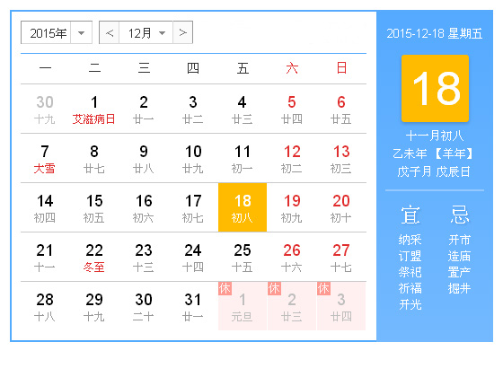 今天是2015年12月18日,星期五。