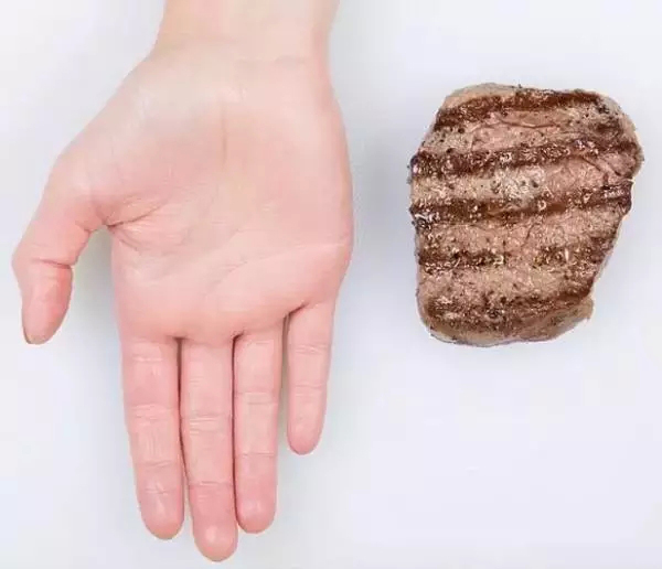每天攝入肉類的量應控制在手掌心(不包括手指)大小,大約50~75克。每周紅肉的總攝入量最好不超過500克。